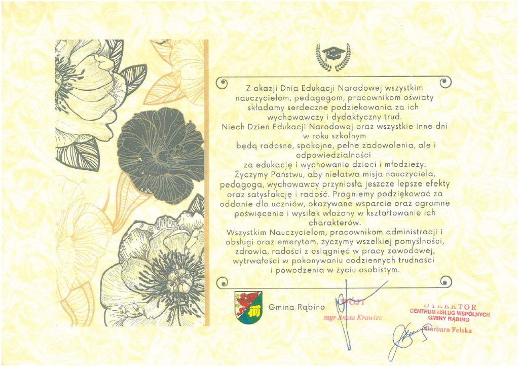 BIP > CUW Gminy Rąbino > Aktualności > Życzenia z Okazji Dnia Edukacji Narodowej